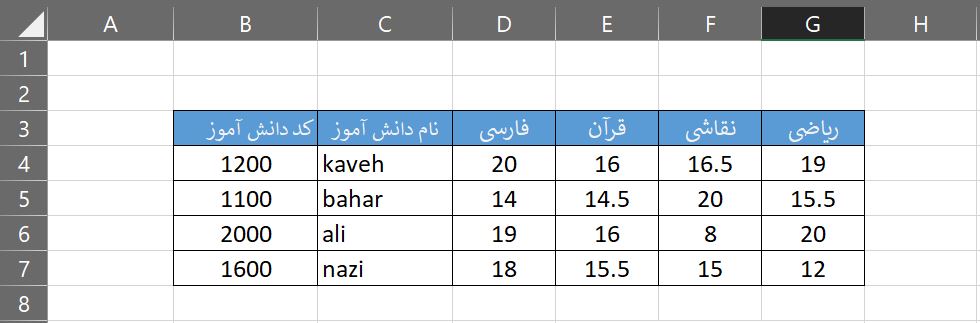 با توجه به تصویر چون نام دانش آموزان در ستون C وارد شده است، باید جدول ما از ستون C شروع شود.