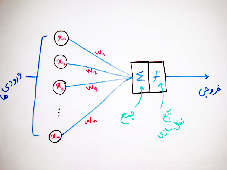 عنصر چهارم یک تابع فعالسازی است که فعلاً در این درس به دلیل سادهسازیِ مطلب به آن نمیپردازیم (در درسهای آینده حتماً به تابعِ فعالسازی خواهیم پرداخت)