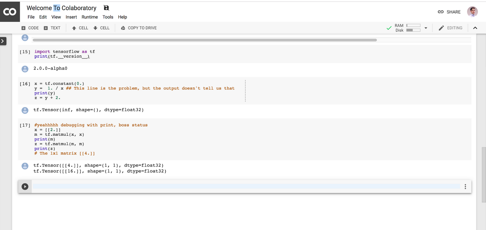 در اینجا میتوان به سرعت Y را چاپ کرد و تشخیص داد مشکل از کجا بوده است؛ این امر فرایند اشکالزدایی را آسانتر میسازد (نیازی به صبر کردن برای اجرای tf.session و سپس، ارزیابی Y نیست).