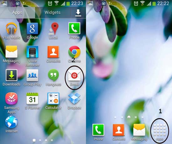 ۱- انتخاب App و سپس انتخاب نرم افزار Email وارد این نرم افزار می شویم تا تنظیمات ایمیل را انجام دهیم.
