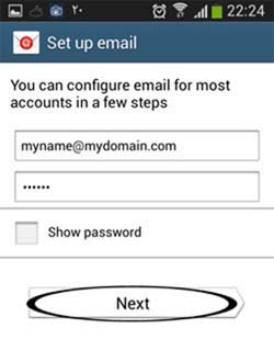 ۲- در این بخش Setup Email نام ایمیل و پسورد ایمیل را وارد نموده و Next را کلیک میکنیم.