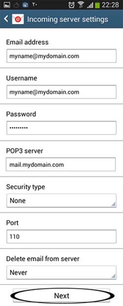 ۴- در بخش تنظیمات Incoming بایستی در بخش ایمیل و یوزر نام ایمیل شما وارد شود وسایر فیلدها نیز طبق نمونه ی عکس انجام شود.
