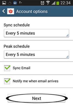 ۶- در بخش تنظیمات اکانت حداقل زمان Sync Schedule برابر ۵ دقیقه می باشد.