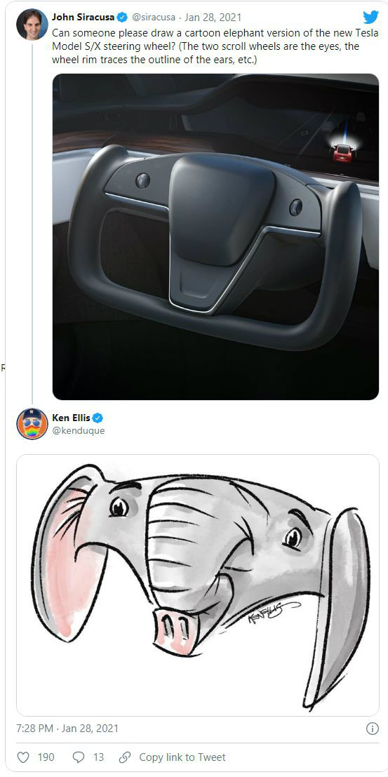 بد نیست در پایان بعضی از شوخیهایی که کاربران توئیتر با شکل فرمان تسلا مدل S و مدل X داشتهاند را مرور کنیم.