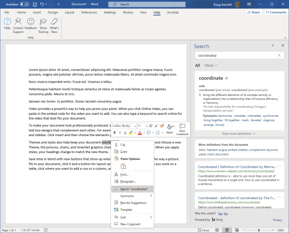 اگر در حال نوشتن یک متن هستید و از کلمهای استفاده میکنید که به درستی از معنی آن اطلاع ندارید، میتوانید روی آن راست کلیک کنید و گزینه Search را انتخاب کنید تا معنی آن ظاهر شود.