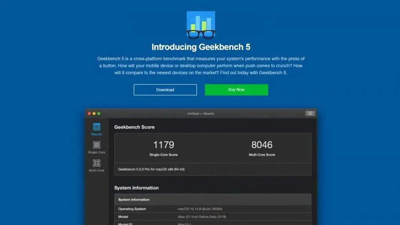 اگر میخواهید نتایج بنچمارک به دست آمده را با صدها سیستم و قطعهی دیگر مقایسه کنید، Geekbench 5 یک ابزار مناسب برای این کار به حساب میآید. این برنامه میتواند تستهای مختلف در زمینههای گوناگون را انجام دهد. سپس با آپلود نتیجهی تستها، میتوانید گزارش جامعی از وضعیت سیستم در مقابل دیگر سیستمها را دریافت کنید.