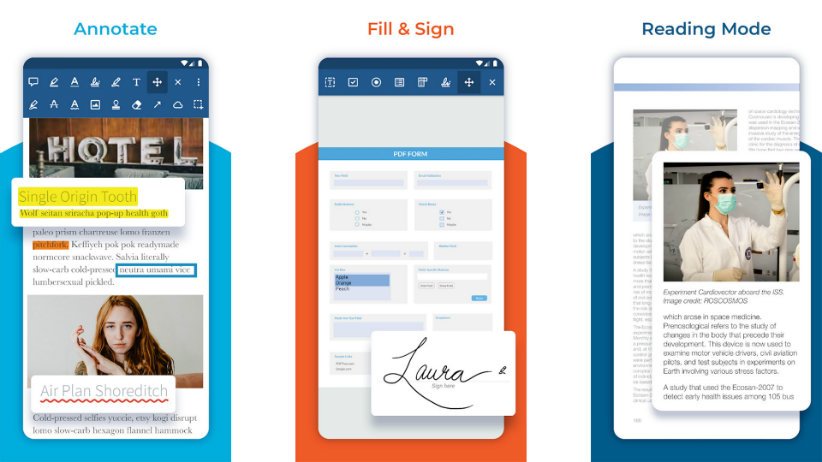 Xodo احتمالا بهترین اپلیکیشن پیدیاف خوان رایگان موجود در پلی استور باشد. این اپلیکیشن به شکلی بسیار سریع بارگذاری میشود و رابط کاربری خوشدستی دارد. با Xodo میتوانید فرمهای پیدیاف را پر و امضا کنید. حتی میتوانید امضایتان را ذخیره کنید و خیلی راحت آن را به مستندات آتی اضافه نمایید. شمار قابلیتهای موجود در اپلیکیشن به شکل غافلگیرکنندهای زیاد است و وقتی رایگان بودن اپلکیشن را (آن هم بدون هیچ خرید درون برنامهای) در نظر میگیریم، Xodo به یکی از بهترین اپهای حاضر در این لیست تبدیل میشود.