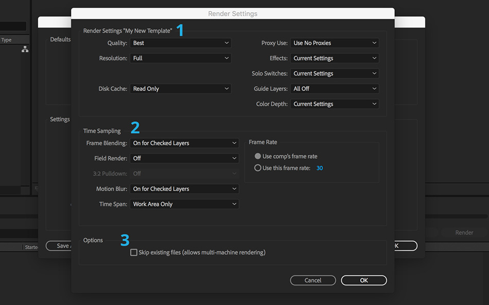یکی از بخشهایی که کمتر درباره آن صحبت شده است، بخش تنظیمات رندر و ماژول های خروجی در افتر افکت است. درک این بخشها تأثیر زیادی در کارآمدتر ساختن رندرها دارد. همچنین میتوان قالبهایی ساحت که شامل تنظیمات پراستفاده رندر و ماژول خروجی باشند و آنها را با اعضای تیم به اشترک گذاشت تا از یکسان بودن کیفیت و منسجم بودن خروجی اطمینان حاصل کرد.