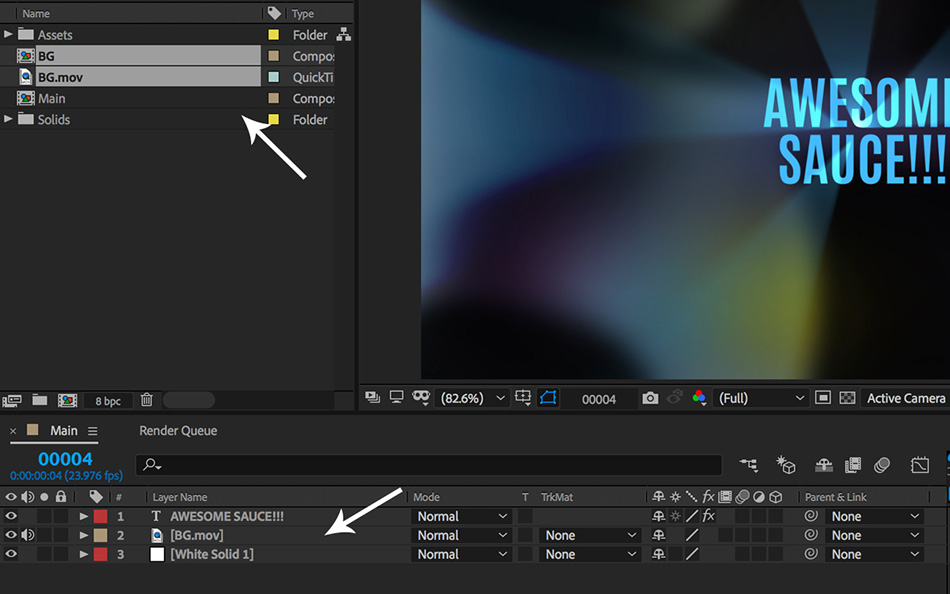 در این پروژه یک کامپوزیشن اصلی (main) داریم و کامپوزیشن دیگر پسزمینه ما را تشکیل میدهد.