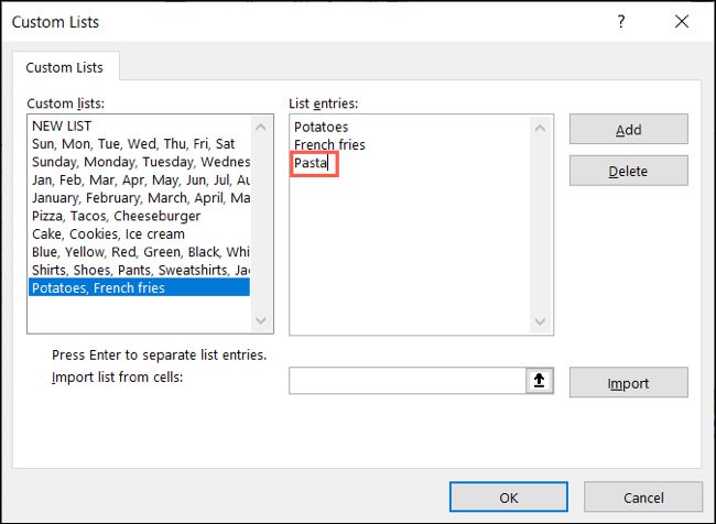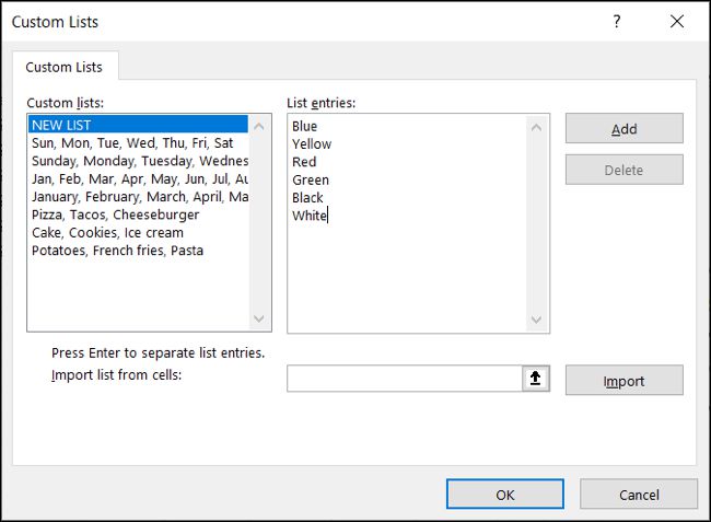 اگر هم اکنون یک لیست از دادهها درون صفحه گسترده (Spreadsheet) دارید، میتوانید با استفاده از ویژگی Import، آن را به یک لیست سفارشی در اکسل تبدیل کنید. امکان استفاده مجدد از این لیست بدون نیاز به ورود دوباره دادهها وجود دارد.