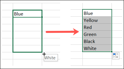 یکی از موارد کاربردی درباره لیست سفارشی در اکسل، امکان استفاده از آن در هر صفحه گسترده یا ورکبوک است. به سلول موردنظرتان بروید و یکی از آیتمها را تایپ کنید تا لیست پر شد.