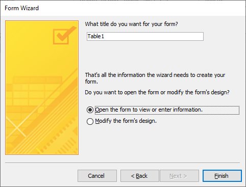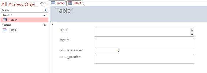 با انتخاب گزینه Modify the form’s design میتوانیم ساختار فرم ایجاد شده را ویرایش کنیم. بدین ترتیب یک Form ایجاد خواهد شد.