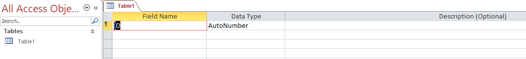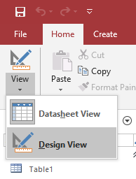 از آنجایی که باید ابتدا ستونها (فیلدهای) جدول را مشخص کنیم، با فشردن دکمه طراحی جدول (Design View) وارد بخش طراحی جدول در پایگاه داده اکسس خواهیم شد.