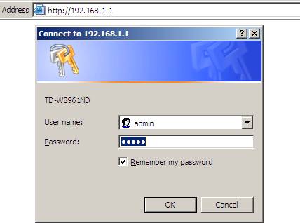 ابتدا مرورگر وب را باز کرده و نشانی IP روتر را که به صورت پیشفرض برابر با 192.168.1.1 است وارد کرده و اینتر را بزنید. نام کاربری و رمز عبور روتر را وارد کنید که به طور پیشفرض هر دو مقدار admin را دارند. سپس OK را زده و وارد دستگاه شوید.