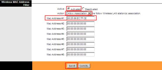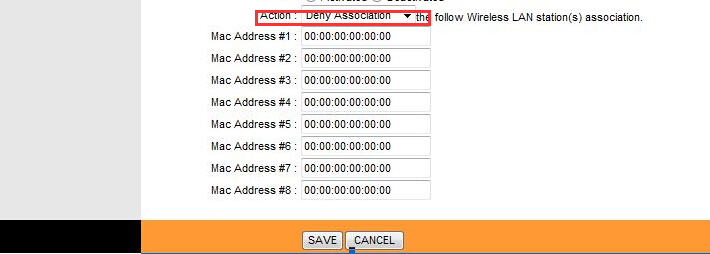 در نهایت روی دکمه Save کلیک کنید. امکان انتخاب گزینه Deny Association و وارد کردن مک آدرسها نیز وجود دارد که به این ترتیب مک آدرسهای موجود در لیست امکان استفاده از اینترنت بیسیم را نخواهند داشت.