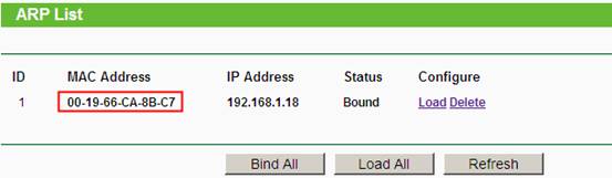 به صفحه IP & MAC Binding->ARP List بروید تا مک آدرس همه دستگاههایی که به روتر وصل شدهاند را ببینید.