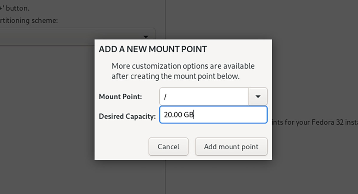 اگر تصمیم به نصب اپلیکیشنهای زیاد در لینوکس ندارید، پارتیشن اول را با فضایی حدود ۱۵ تا ۲۰ گیگابایت پیکربندی کنید. درصورت نیاز به اپلیکیشنها یا بازیهای زیاد، احتمالا تا ۵۰ گیگابایت فضا نیاز خواهید داشت. بههرحال میتوان با درنظرگرفتن فضای موردنیاز برای بازیهای موردعلاقه، پیکربندی پارتیشن اصلی را تغییر داده و فضای آن را بیشتر کرد. درصورت نیاز به تغییر پیکربندی و فضای ذخیرهسازی هر پارتیشن هم میتوانید با بوت کردن سیستمعامل به یک محیط لایو لینوکس، پارتیشنبندی را به کمک ابزار مخصوص یا خط فرمان انجام دهید.