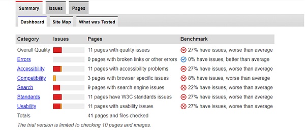 این ابزار کار تحلیل سایت شما را بر مبنای مجموعهای از استانداردها انجام میدهد. البته بزرگترین نقطه ضعف این سایت، آن است که نمیتواند گزارشهای کمی خوبی را در خصوص انواع پارامترها ارائه کند.