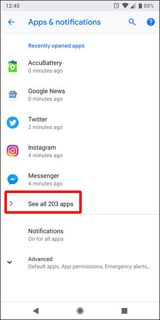 اگر در دستگاهتان اندروید 8 به بالا نصب باشد، باید ابتدا روی گزینهی «See All Apps» ضربه بزنید تا لیست کامل اپلیکیشنها برایتان نمایان شود. برای اندرویدهای قدیمیتر، در همین لیست تنها کافی است نرمافزار مشکلدار خود را پیدا کنید.