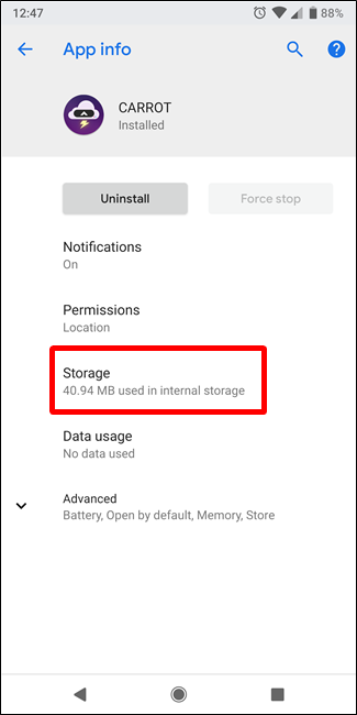 پس از بسته شدن اپلیکیشن، وارد گزینهی «Storage» شوید.