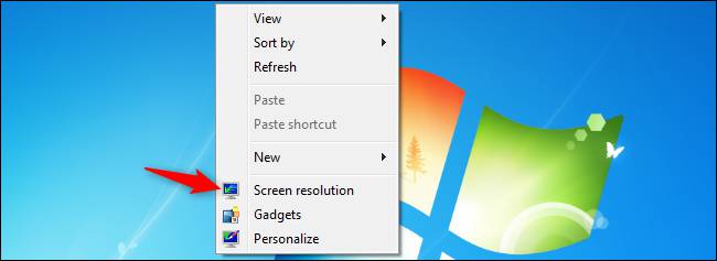 برای تغییر رفرش ریت نمایشگر در ویندوز 7، بر روی دسکتاپ کلیک کرده و گزینهی «Screen Resolution» را برگزینید.
