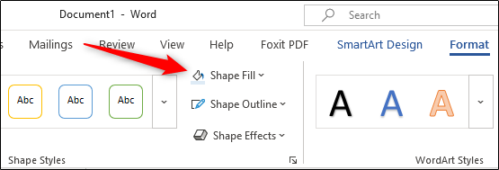 در ادامه باید پس زمینه گرافیک SmartArt را حذف کنید. باکس را انتخاب کرده و سپس در گروه «Shape Styles» در تب فرمت، روی گزینه Shape Fill کلیک کنید.