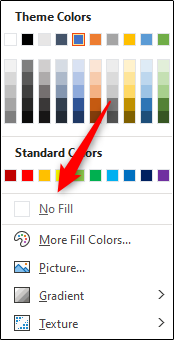 حالا در منوی کشویی که ظاهر میشود، گزینه No Fill را انتخاب کنید.