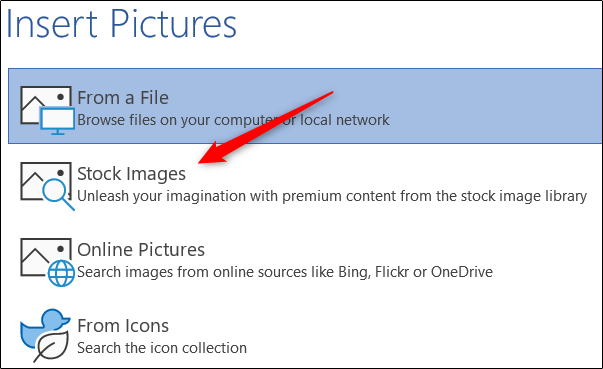 حالا پنجره «Insert Pictures» ظاهر میشود و میتوانید از منابع زیر یک عکس در آفیس ۳۶۵ پیدا کنید:
