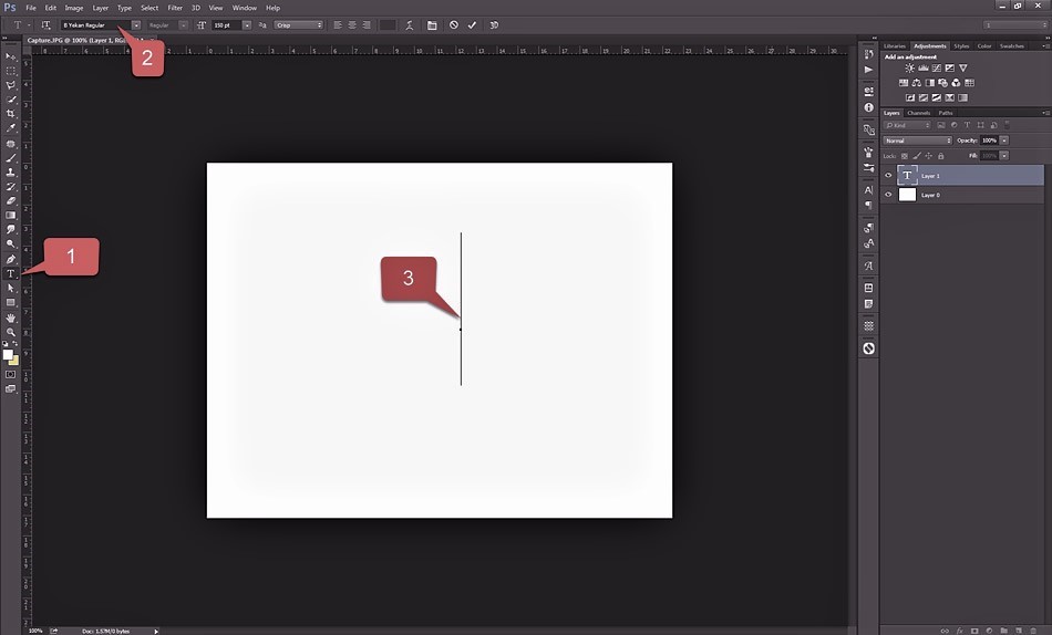 برای شروع فارسی تایپ کردن در فتوشاپ، حتما باید از فونت فارسی و یا فونتهای پیش فرضی که قابلیت تایپ فارسی را دارند، مانند “arial” و “Tahoma” استفاده کنید. برای فارسی نویسی طبق مراحل زیر پیش میرویم.