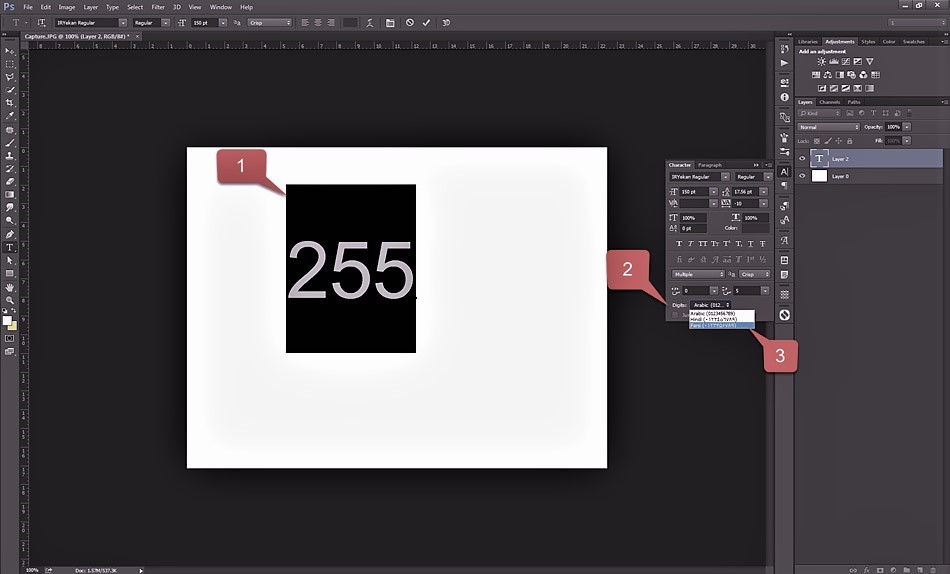 تایپ اعداد فارسی در فتوشاپ