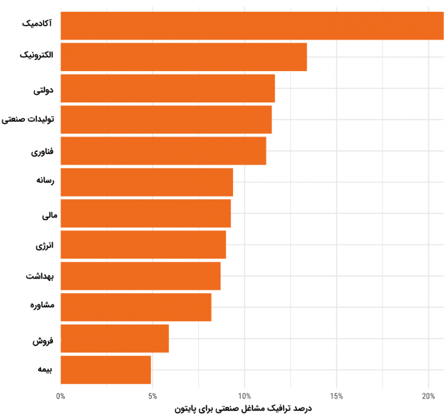 بدون شک، یادگیری پایتون به یکی از ملزومات برنامهنویسی در چند سال اخیر تبدیل شده است. بسیاری از شرکتهای بزرگ حوزه صنعت IT نظیر اینستاگرام، «نتفلیکس» (Netflix)، گوگل و سایر موارد از پایتون برای مقاصد تجاری استفاده میکنند. در ادامه، برخی از موقعیتهای شغلی بسیار مناسب برای برنامهنویسان به زبان پایتون نمایش داده شده است. اطلاعات ارائه شده در این بخش، با هدف کمک به مخاطبان و خوانندگان در انتخاب زبان برنامهنویسی مورد علاقه خود، از میان زبانهای پایتون یا جاوا ارائه شده است.