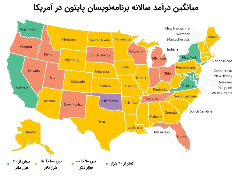 شکل زیر، میزان میانگین درآمد سالانه برنامهنویسان پایتون در سال 2019 را نشان میدهد.