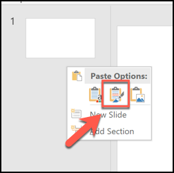 برای پیست کردن دو گزینه پیش رویتان قرار میگیرد. با کلیک روی Use Destination Theme اسلایدهای قدیمی شما با ورود به پاور جدید، استایل و تم پاورپوینت جدید را به خود میگیرند. اما اگر روی گزینه Keep Source Formatting کلیک کنید این اتفاق نیفتاده و استایل و تم اسلایدهای قدیمی همچنان حفظ میشود.