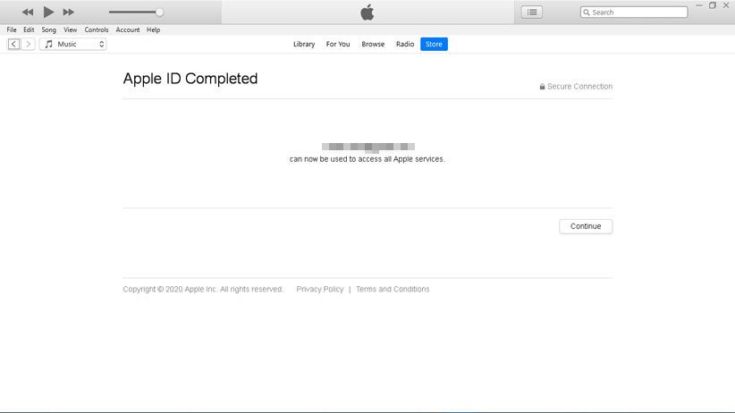 پس از وارد کردن کد، پیغام تکمیل ساخت حساب برای شما نمایش داده میشود و باید گزینه Continue در پایین صفحه را انتخاب کنید.