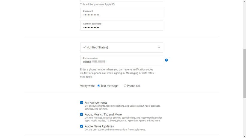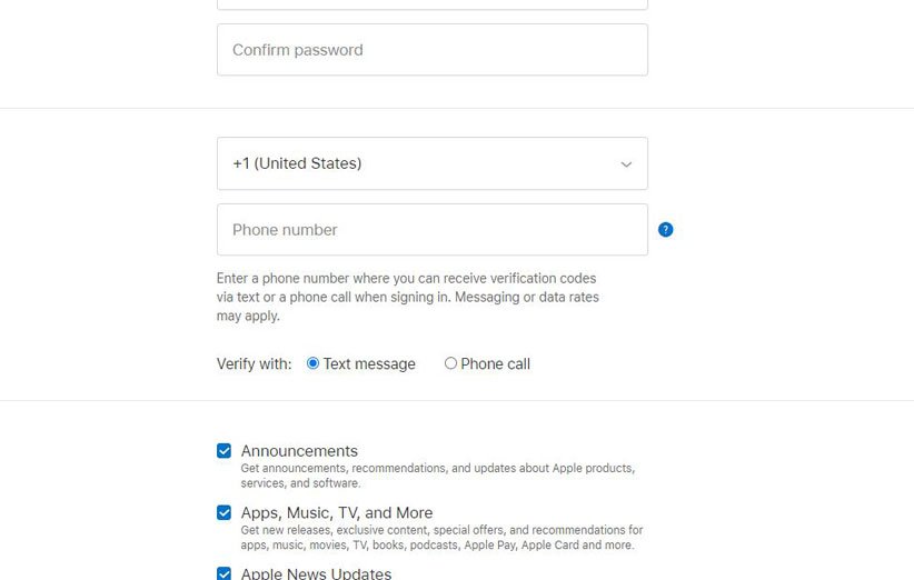 البته به غیر از iTunes میتوانید از طریق وبسایت خود اپل به نشانی Appleid.apple.com حساب جدید بسازید. البته این همان روشی است که باید حتما یک شماره تلفن خارج از ایران را برای دریافت کد تایید در سایت وارد کنید. در این شیوه شما میتوانید به سه روش مختلف برای خود اپل آیدی جدید بسازید.