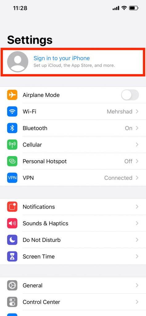 گزینه Sign in to your iPhone را انتخاب کنید.