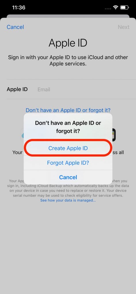 گزینه Create Apple ID انتخاب بعدی شما خواهد بود.