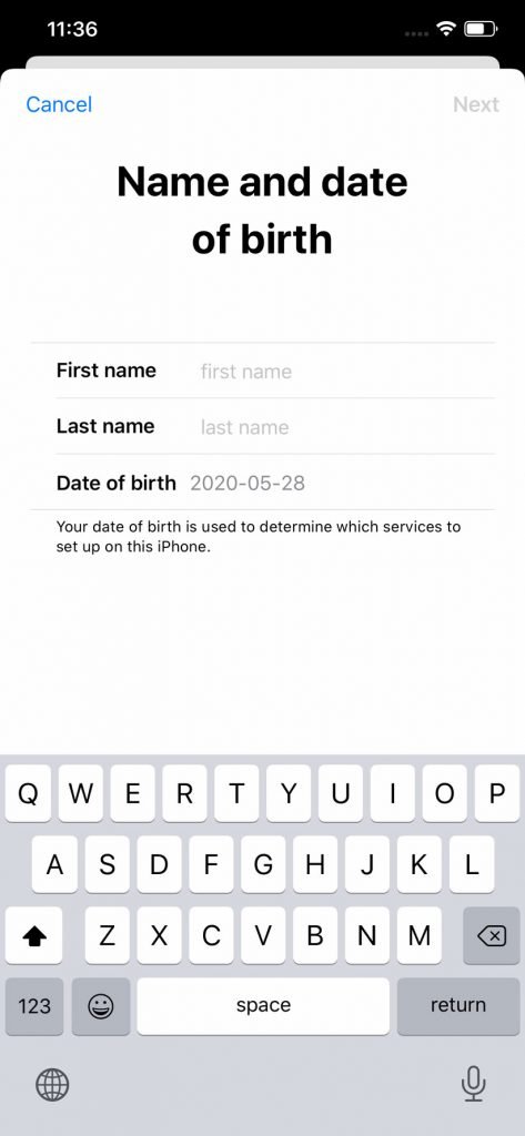 در این مرحله شما باید نام و نام خانوادگی خود را به همراه تاریخ تولد وارد کنید.