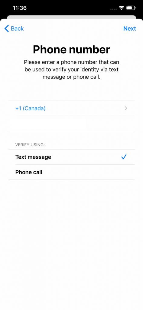 حال باید شماره تلفن خود را وارد کنید که میتوانید از شمارههای مجازی یا شماره Google Voice کمک بگیرید. پس از آن گزینه Text Message را یرای دریافت کد تایید انتخاب کنید تا کد برای شما پیامک شود.