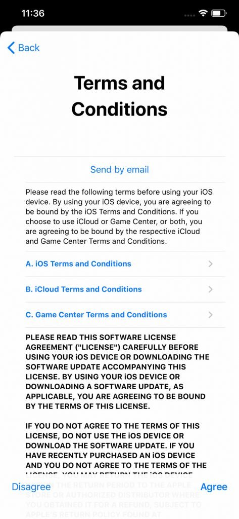 در این مرحله اپل توافقنامهای را با شما به اشتراک میگذارد که در صورت عدم تایید آن نمیتوانید حساب کاربری خود را بسازید. در نتیجه، باید گزینه Agree را انتخاب کنید. پس از طی این مراحل میتوانید آدرس و سایر مشخصات را وارد کنید.