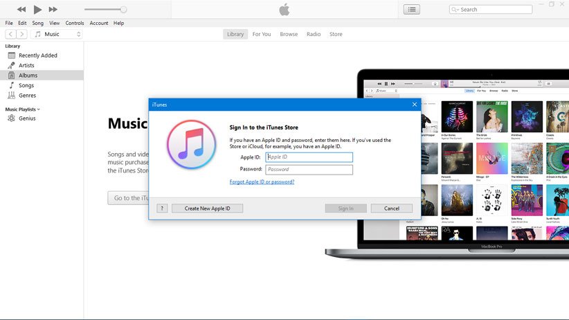 گزینه Sing in to iTunes را انتخاب کنید.