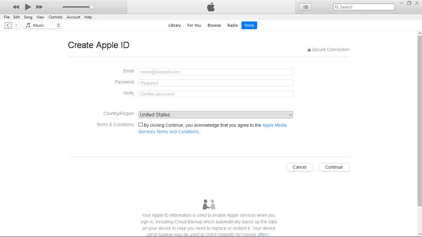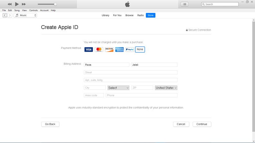 از میان راهکارهای موجود، طولانیترین اما مطمئنترین روش که البته کاملا هم رایگان است، استفاده از iTunes برای ساخت اپل آیدی است. در این روش شما ابتدا باید نرم افزار iTunes را در رایانه خود نصب کنید. مهم نیست سیستم عامل مورد استفاده شما ویندوز باشد یا مک، میتوانید این برنامه را از وبسایت اپل و یا فروشگاه مایکروسافت دریافت کنید. پس از نصب iTunes مراحل زیر را طی نمایید.