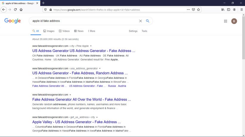 برای ثبت آدرس میتوانید عبارت Apple ID fake address را در گوگل جستجو کنید و سپس یکی از نتایج اولی را که نمایش میدهد انتخاب نمایید یا مستقیما به سایت Fake Address Generator بروید و دکمهی Random Adrdress را بزنید.