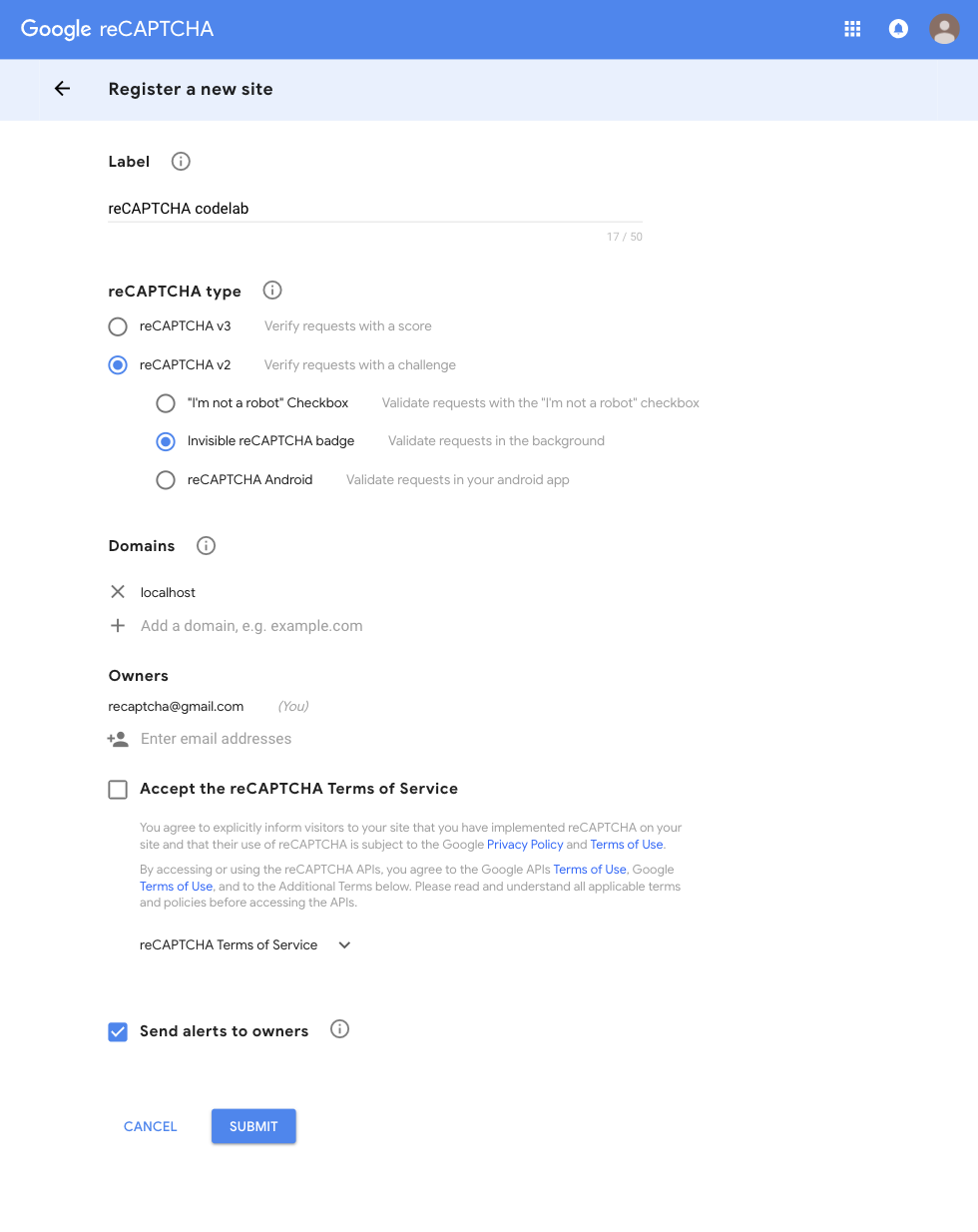 همانطور که می بینید در این فرم باید بین نسخه دوم و سوم reCAPTCHA انتخاب کنید. همچنین نوع کپچای شما نیز در این قسمت انتخاب می شود. من به شما پیشنهاد می کنم که از همان نسخه دوم (v2) استفاده کنید چرا که نسخه سوم مخصوص وب سایت های خاص است و مشکلاتی نیز دارد. مثلا اسکریپت های نسخه سوم باید در تمام صفحات وب سایت شما بارگذاری شده و به همراه لینک «حریم خصوصی» یا privacy باشند. همچنین علاوه بر رفتار کاربر (کلیک ها و حرکات موس) تمامی محتوای فرم نیز به گوگل آپلود می شود بنابراین سعی کنید از همان نسخه دوم استفاده نمایید. من فعلا روی حالت checkbox تمرکز می کنم و در انتهای مقاله گزینه invisible را نیز توضیح خواهم داد.