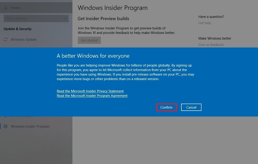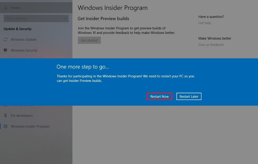 قبل از اینکه وارد بخش اینسایدر شوید، بهتر است از طریق Control Panel > System > System protection از سیستم خود پشتیبان بگیرید تا در صورت بروز هرگونه مشکلی بتوانید به عقب بازگردید. سپس به قسمت تنظیمات رفته و روی Update & Security کلیک کنید. به سمت پایین اسکرول کرده تا عبارت Windows Insider Program را مشاهده کنید. با کلیک روی آن، وارد منوی انتخاب حالتهای مختلف برای دریافت بروزرسانی میشوید. Get Started را کلیک کرده و با طی کردن مراحل، به عنوان اینسایدر حلقه سریع (Fast) ثبت نام کنید. سیستم شما بعد این فرایند ریستارت خواهد شد. میتوانید مراحل ثبت نام را در تصاویر زیر تماشا کنید.