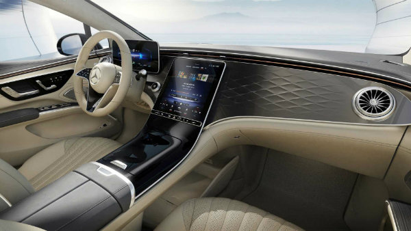همانطور که از قبل نیز مشخص بود، مرسدس بنز EQS یکی از مدرنترین کابینهای موجود در تاریخ صنعت خودرو را دارد. از لحاظ طراحی، فضای داخلی نسخه تولیدی این خودرو بسیار متفاوت از مدل کانسپت EQS بوده و به نظر میرسد طراحان با آزادی عمل کامل قسمتهای مختلف را خلق کردهاند.