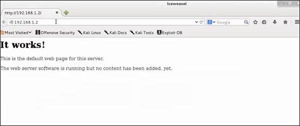 یک صفحه وب را با نشانی 192.168.1.2 باز کنید.