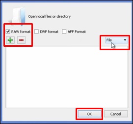 در ادامه صفحه زیر باز میشود. روی Raw format و سپس علامت بعلاوه (+) کلیک کنید تا پوشهای که میخواهید بازیابی شود را انتخاب نمایید.