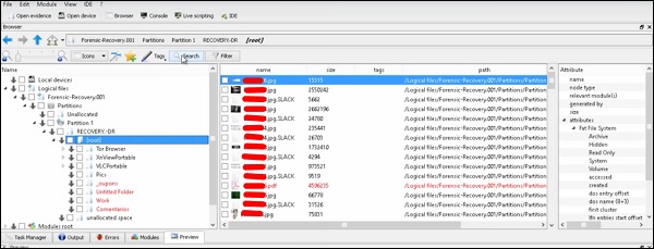 در ادامه میتوانید فایلها را در سمت چپ بگردید تا موارد بازیابی شده را ببینید.