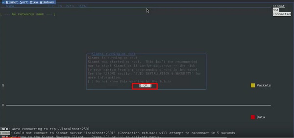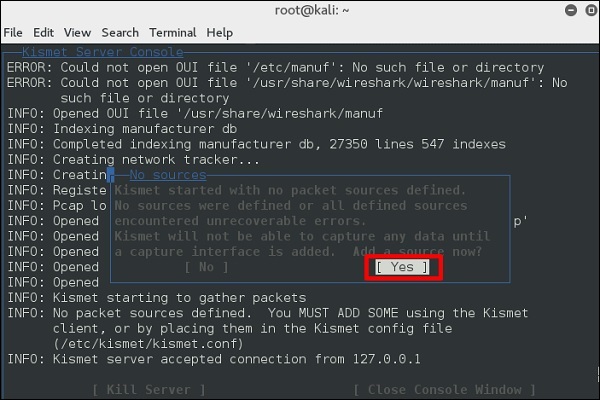 گام سوم: زمانی که از شما خواسته میشود تا سرور Kismet را آغاز کنید، روی Yes کلیک کنید. در غیر این صورت این ابزار از کار میافتد.